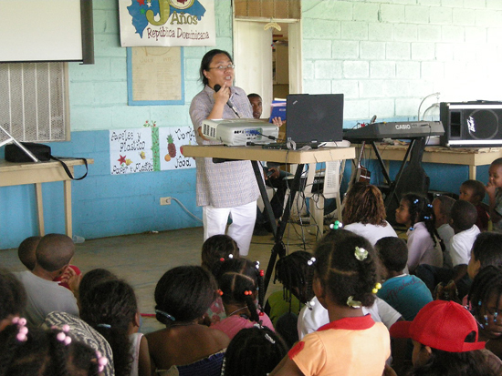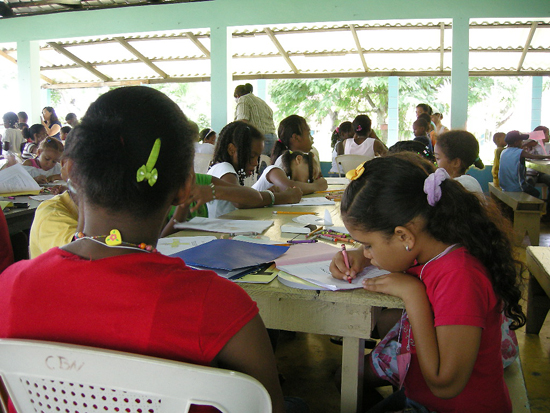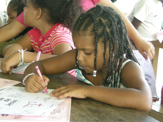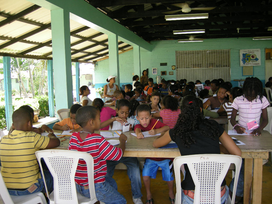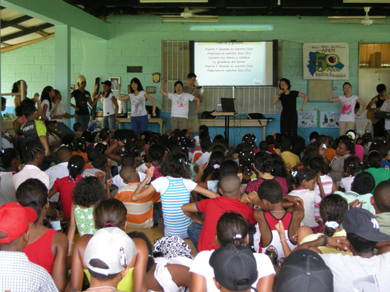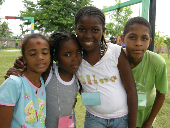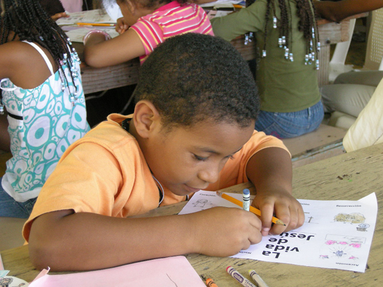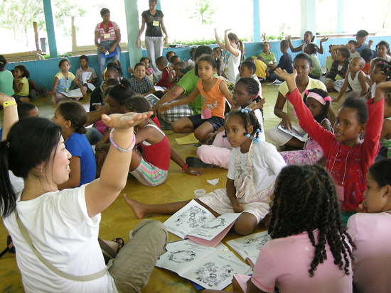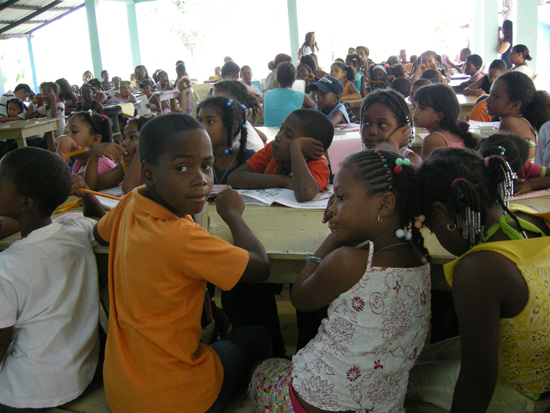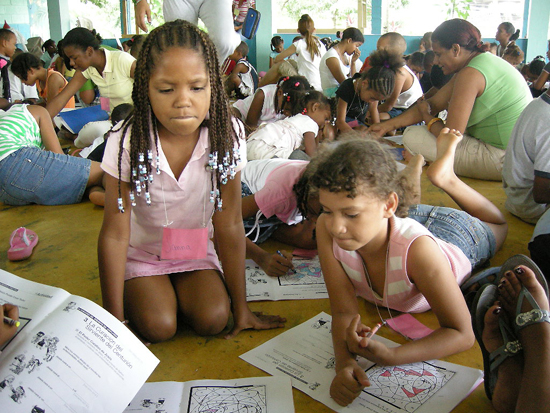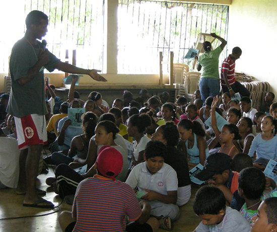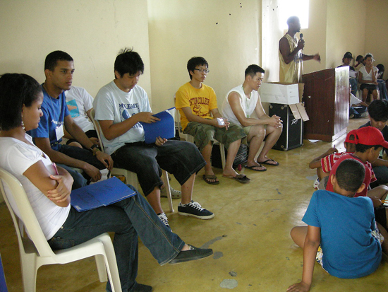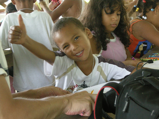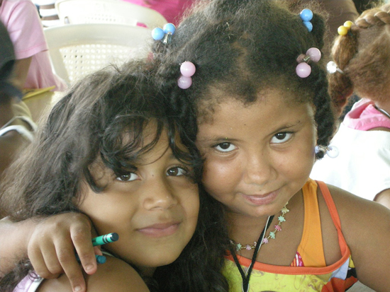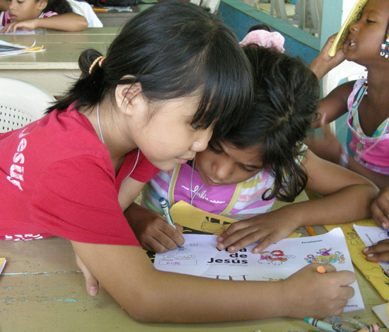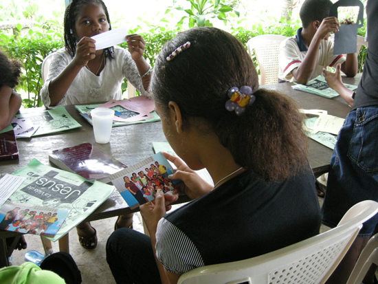 | ▲성경 말씀을 듣는 베르데. 아술 그룹 어린이들 | |
