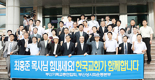 이날 최 목사가 조사를 받은 강서경찰서에는 부산 지역 목회자들과 대책위 관계자 30여명이 최 목사를 격려하기 위해 방문하기도 했다.