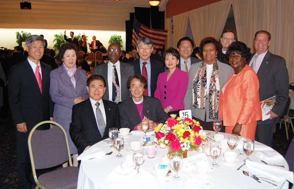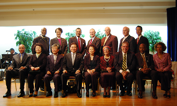 | ▲강현석 장로의 수상을 축하하기 위해 참석한 후러싱제일교회 김중언 목사 내외와 성도들 |