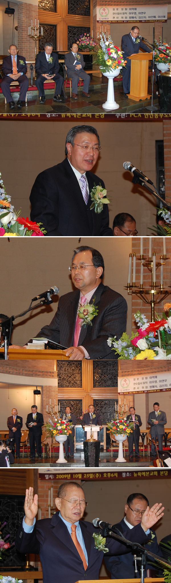 임직식은 오태환 목사(뉴욕은총장로교회 담임, PCA한인동부노회 뉴욕시찰장)의 집례로 진행됐다. 박상일 목사(뉴욕남교회 담임)은 임직자들에게 "어떤 자세로 임직 받는지 늘 되새기라"고 권면했다. 그는 "중직을 맡게 되면 군림하는 사람이 있고, 섬기는 사람이 있다."며 "어느 곳에 초점을 두고 사느냐에 따라 군림자가 될 수도, 그리스도의 제자로서 섬길 수도 있다. 그리스도를 바라보며 섬김에 초점을 맞추고 나갈 때 마음이 변치 않을 수 있다. 군림하라는 유혹의 목소리가 들려와도 섬기며 본을 보여주기 바란다."고 전했다.