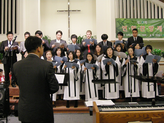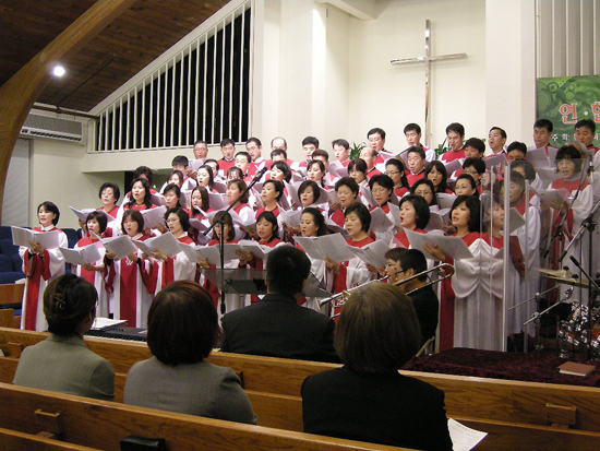 ▲복된한인장로교회에서 찬양을 선보이고 있다.