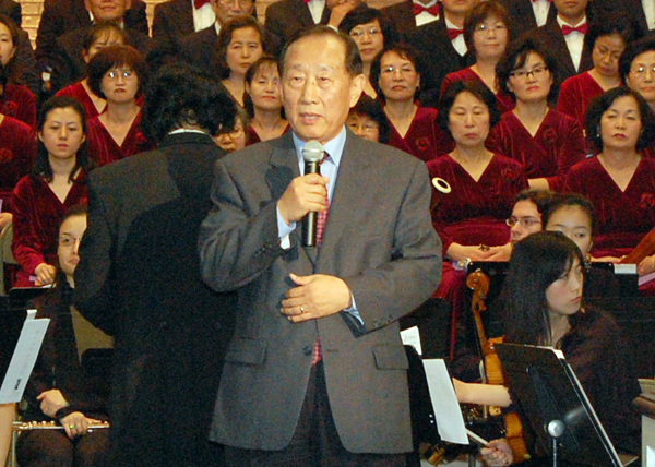 ▲관객들에게 앵콜곡으로 '할렐루야'를 선사하는 양군식 지휘자