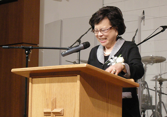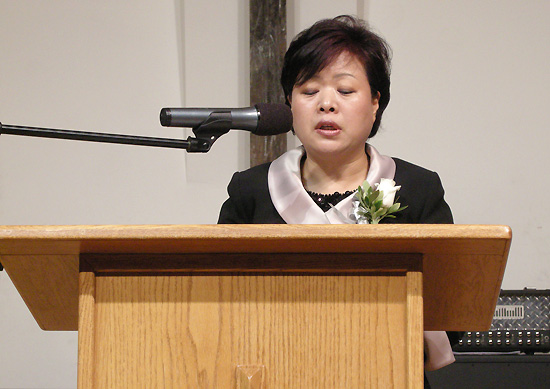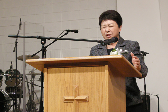 | ▲특송하는 조공자 전도사(프라미스교회) |