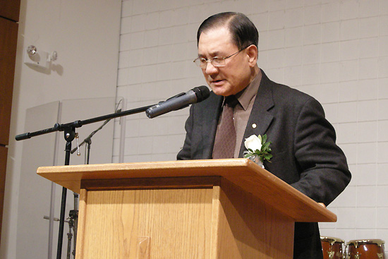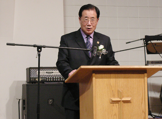 | ▲황경일 목사(전 대뉴욕지구한인교회협의회. 대뉴욕지구한인목사회 회장)가 축사했다. |