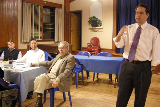 ▲지난 19일 락클랜드-웨체스터 노회 모임이 업스테이트 뉴욕 웨스트 나약에 위치한 클락스타운 개혁장로교회에서 진행됐다. 더글라스 목사는 식사 후 간증 시간과 예배 중 사역 소개 시간을 가졌다.