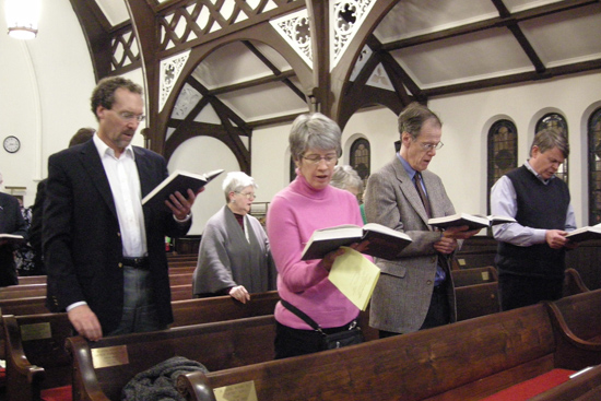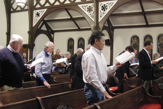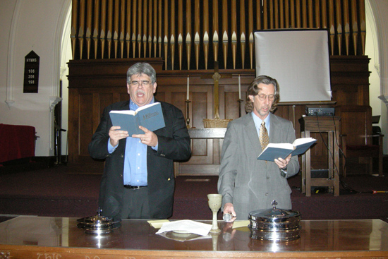 ▲RCA 전통 예배 형식에 맞춰 예배드리는 노회 목회자들