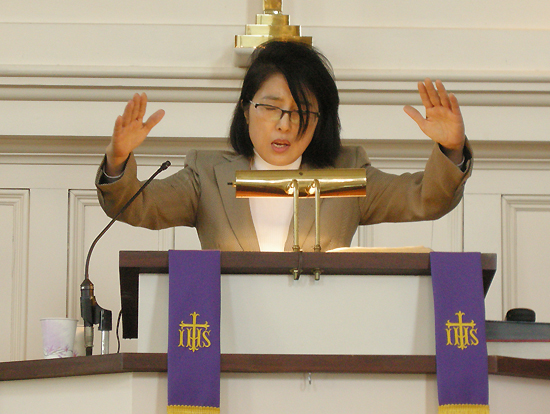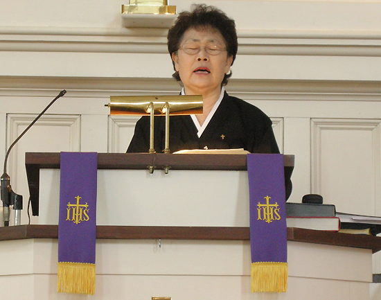 ▲이정자 목사가 합심기도 후 대표기도했다.