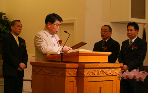 임직예배는 김인호 목사의 사회, 윤정산 장로의 기도, 최한나와 나살의 특송, 윤병남 목사(풍성한교회)의 설교, 김홍렬 목사의 특별 연주, 노규호 목사(수도침례교협 총무)의 시취보고, 최인환 목사(수도침례교협 버지니아지방회 부회장)의 권면, 우보문 전도사의 특송 등으로 진행됐다.