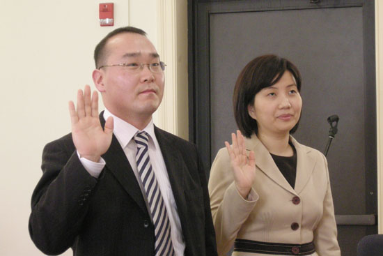 | ▲서약하는 (왼쪽)김도일 목사와 이중희 사모 | |