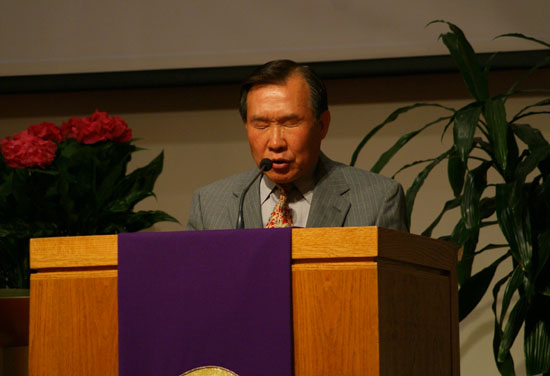 이종윤 목사는 요한복음 17장 13-26절을 인용, “21세기를 향한 교회의 도전과 응전”이라는 제목으로 말씀을 전했다. 이 목사는 프랑스혁명, 공산당혁명, 이신론운동, WCC의 방콕선언 등을 예로 들며 “교회가 사변신학에 빠져있거나 인본주의에 빠져 그 역할을 제대로 못할 때 이런 위기들이 찾아온 것을 우리는 역사를 통해 확인할 수 있었다”며 “먼저 현재의 교회가 하나님이 원하시는 교회의 모습으로 가고 있는지 점검해보자”고 말했다.