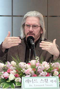 레너드 스윗 박사는 기자회견에서 “세계교회는 한국교회의 에너지와 열정을 통해 서구교회의 침체 상황을 극복할 수 있다고 생각한다”며 “실제로 미국 목회자들 중 한국교회를 방문하고 돌아와서 많은 부분이 변화하는 장면을 목격했다”고 밝혔다. 스윗 박사는 “한국교회는 내적인 문제에 초점을 맞추기보다 전체를 바라본다면 의미있는 역사를 남길 수 있으리라 본다”고 말했다.