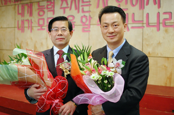 | ▲신임 이사장 황영진 목사(좌)와 신임 학장 허윤준 목사(우) | |