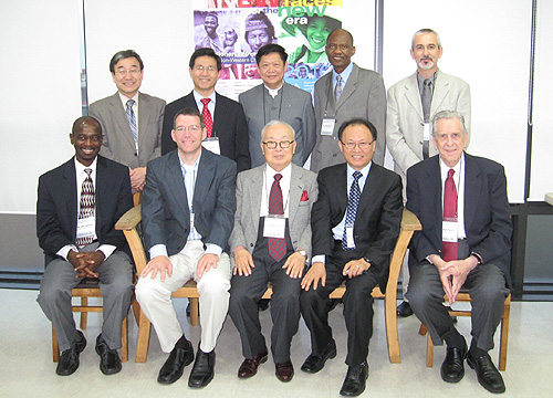 | ▲앞줄 오른쪽부터 풀러신학교 선교대학원 전 원장 폴 피어슨 박사, 풀러신학교 선교대학원 박기호 교수, 제삼세계선교협의회 설립자 조동진 박사, USCWM 사무총장 데이브 데이트마 박사, 풀러신학교 선교대학원 제후 핸슬스 교수, 뒷줄 오른쪽부터 중남미선교협의회 회장 데시오 드 카발호 박사, 아프리카선교협의회 대표 셋 아뇨미 박사, 아시아선교학회 회장 데이빗 하르토노 박사, 동서선교연구개발원 공동대표 조용중 박사, 아시아선교협의회 사무총장 이은무 박사. ⓒ한국=이지희 기자 | |