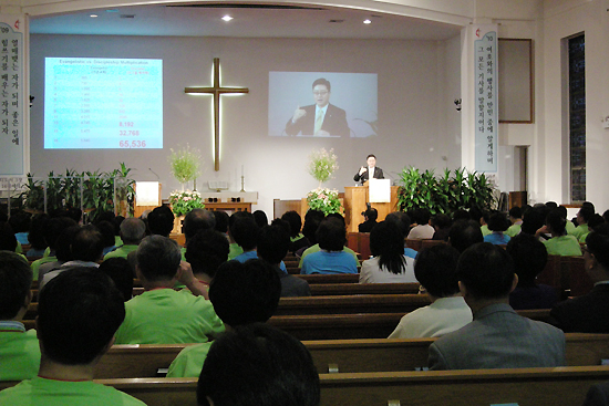 | ▲장학준 목사는 1년에 한 성도가 한 명만 제자화하면 16년째는 65,536명의 제자가 생긴다고 전했다. | |
