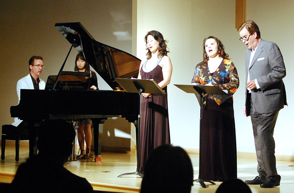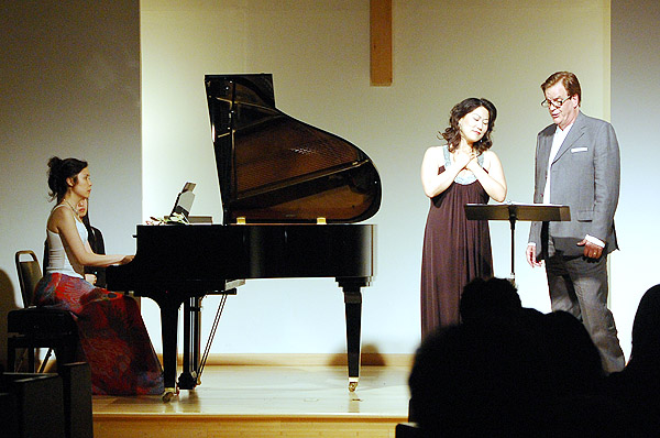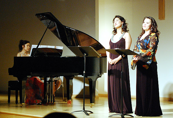 | ▲피아니스트 샤프론 정과 소프라노 이윤아, 메조소프라노 이은주는 고향을 그리워 하는 마음을 담아 한국 가곡 '가고파'를 앵콜곡으로 불렀다. | |