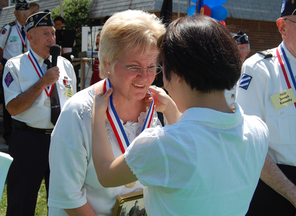 올해는 참전 용사들에게 메달을 수여했다. 목에 메달을 건 참전 용사들은 해맑은 웃음으로 감사의 뜻을 전했다. 이와 함께 참전 용사들의 후손 중 5명을 선정해 각각 4백불의 장학금도 전달했다.
