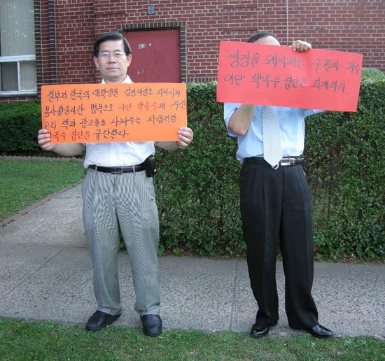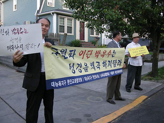 대뉴욕지구한인교회협의회·대뉴욕지구한인목사회·뉴저지교회협의회·미동부 이단대책위원회는 21일 오후 6시 30분부터 21일부터 24일까지 열리는 안종령 목사 성경세미나 저지를 위한 시위를 노던 블러버드 선상에 있는 구원파 기쁜소식뉴욕교회 앞에서 진행했다.