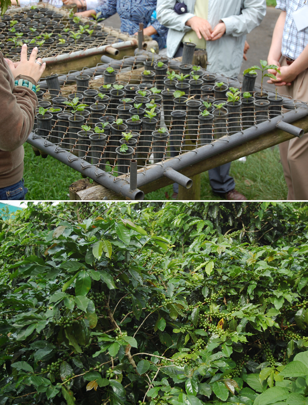 | ▲커피 묘목(위)이 자라 좋은 커피를 생산하는 커피 나무가 되기 까지는 25년이 걸린다고 한다. | |