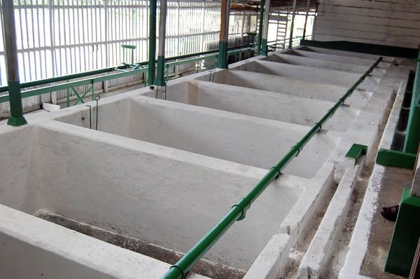 | ▲커피 열매의 과육을 없애는 것이 세번째 공정이다. 물에 며칠간 담궈두면 과육이 사라진다. | |