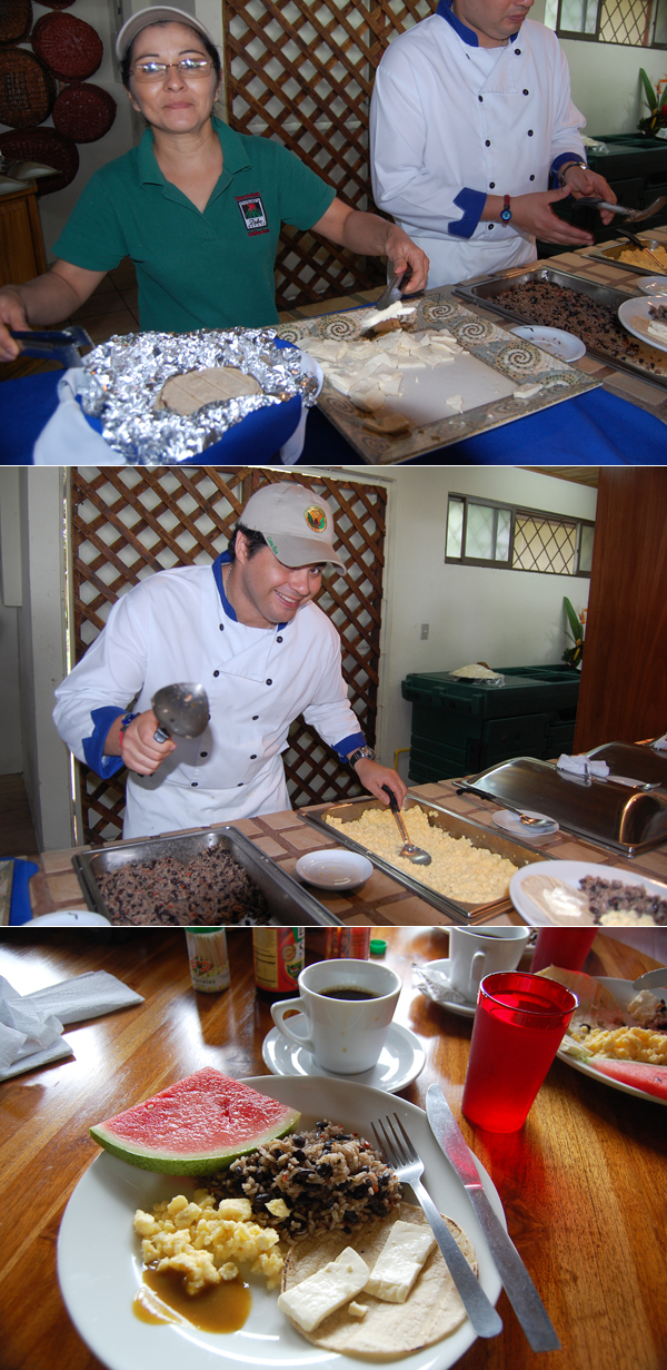 | ▲도카 커피 농장에서 제공하는 아침 식사. 커피와 함께 하는 코스타리카의 전형적인 아침 식사다. | |