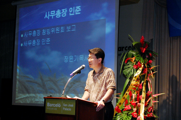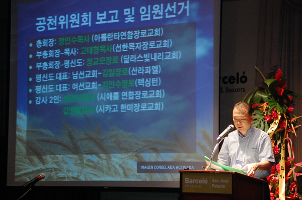 | 공천위원회 대표로 보고하는 장윤기 목사(시애틀연합장로교회 담임) | |