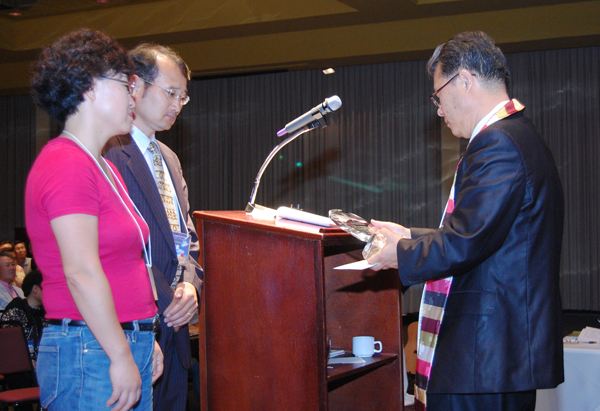 | 총회로부터 감사패를 받는 조영일 장로 | |