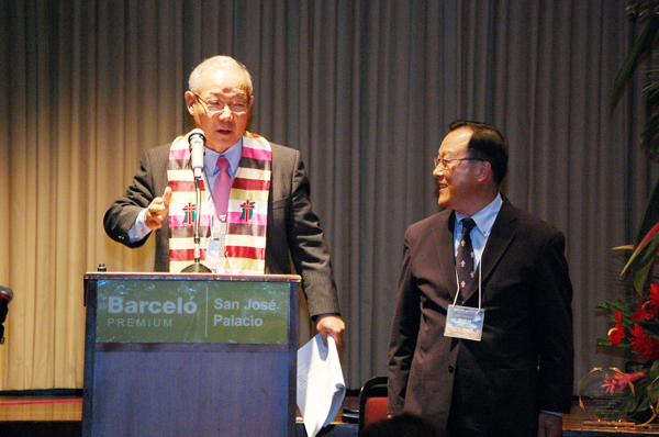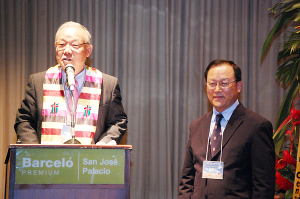 | 이승태 목사가 새 사무총장으로 공천된 문정선 목사를 소개하고 있다. | |