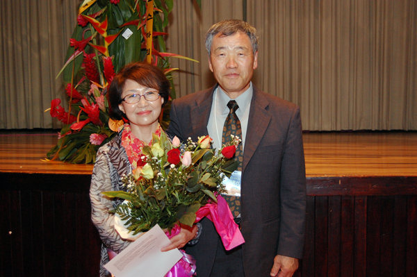 | 총회로부터 감사패와 꽃다발을 받은 이유신 목사 내외 | |