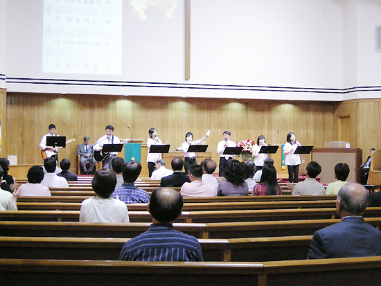 | ▲찬양으로 수련회 둘째 날을 시작했다. | |