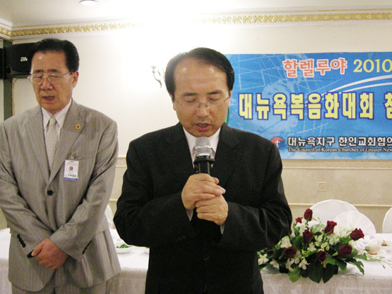 할렐루야 2010 대뉴욕복음화대회를 하루 앞둔 8일 이번 대회 강사인 김삼환 목사가 담임으로 있는 명성교회의 교역자 및 장로. 집사 등 40여명이 이번 집회에 참여하기 위해 뉴욕에 도착했다. 김삼환 목사도 이날 오기로 했으나 하루 연기돼 9일 오전 11시경 뉴욕에 도착한다.