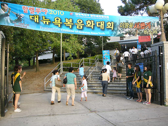 | ▲할렐루야 2010대뉴욕복음화대회 플랭카드가 걸린 대회장 입구 | |