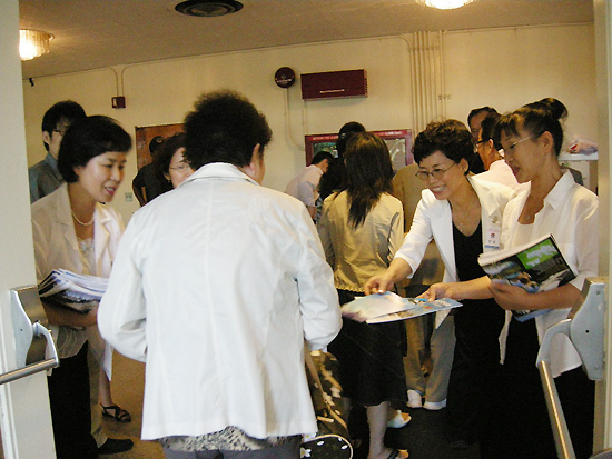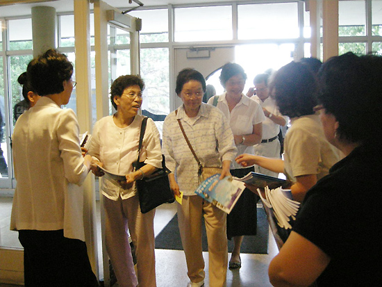 | ▲뉴욕전도대학교 학생들이 순서지를 나눠줬다. | |