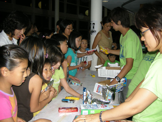 | ▲집에 돌아가며 쥬스와 스낵을 선물로 받아가는 어린이들. | |