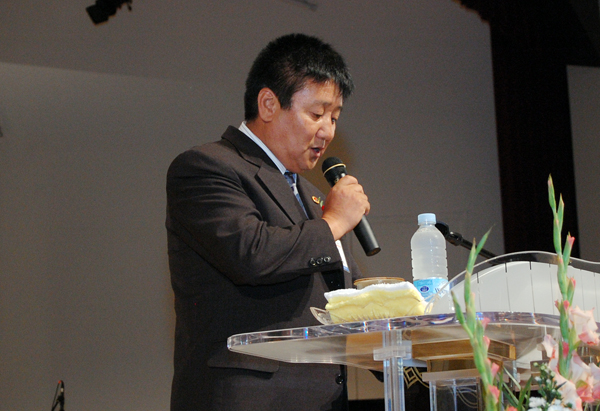 | ▲둘째날 사회를 맡아 집회를 위해 기도하는 김승희 목사 | |