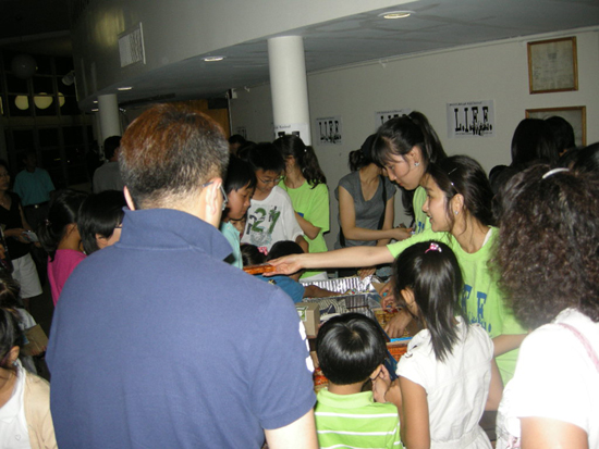 | ▲조희창 선교사가 3일간 참석한 어린이 이름을 부르고 있다. 3일간 참석한 어린이는 선물을 받았다. | |