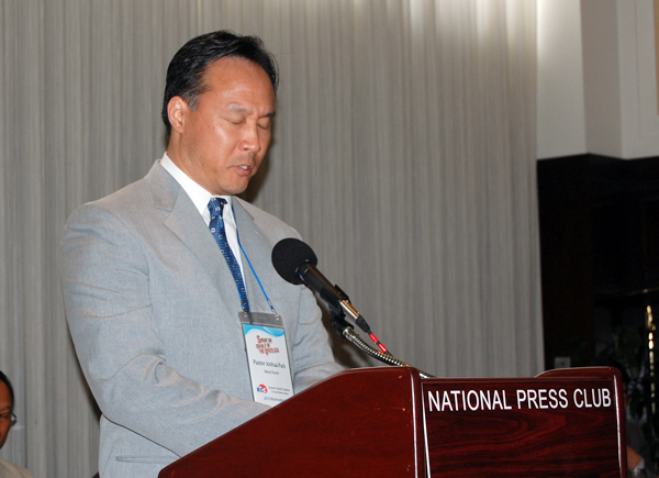 내셔널 프레스 클럽에서 열린 기자회견에는 한국과 전미주에서 모인 목회자, 그리고 1.5세, 2세 청년 인턴, 북한 인권 개선을 위해 기도하는 이들이 모두 모였다.