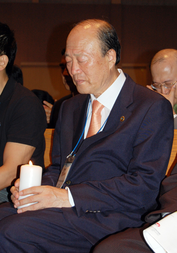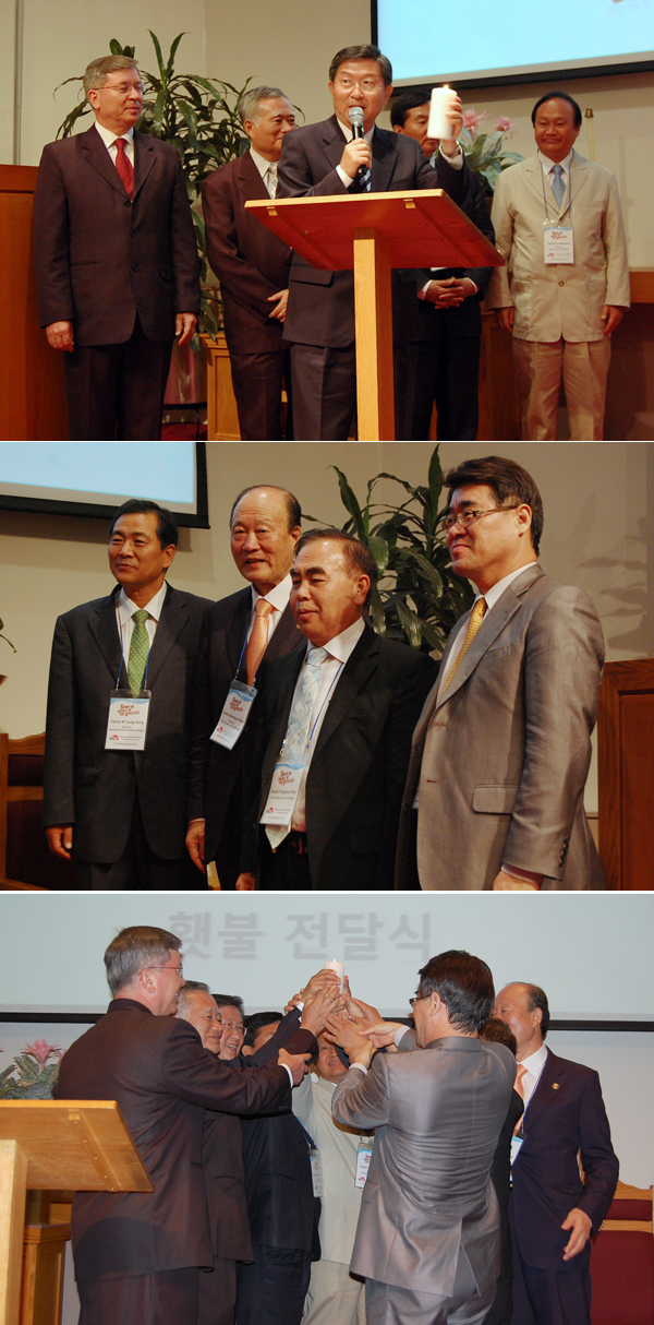 | ▲촛불 전달식을 가진 KCC 미주 간사들과 한국 목회자들 | |