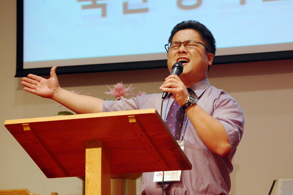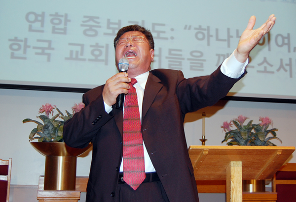 | ▲통성 기도를 인도하는 차용호 목사 | |