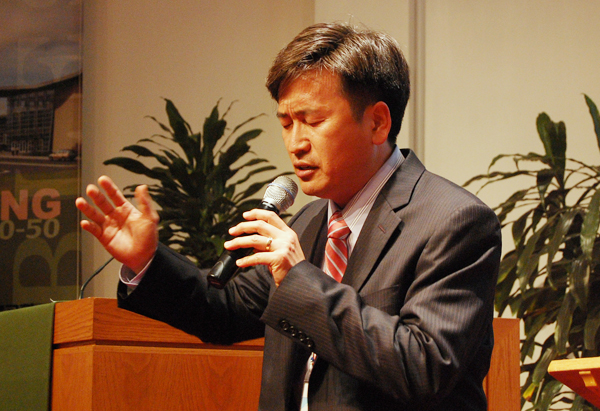 | ▲통성 기도를 인도하는 케넷 손 목사 | |