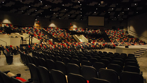 | ▲12 스톤 쳐치의 예배당 전경. 원형구조로 이뤄져 교인들도 서로를 바라보며 예배드릴 수 있도록 했다. |