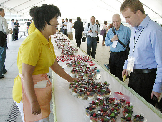 | ▲쉬는 시간 간식을 준비해 섬기는 (왼쪽 노란 티셔츠)프라미스교회 성도. | |