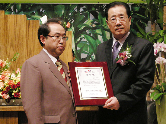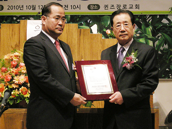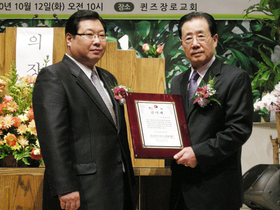 ▲ 감사패를 받은 (왼쪽)이만호 목사.
