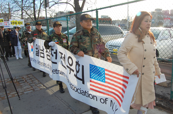 민주평화통일자문회의뉴욕협의회, 뉴욕한인회, 대한민국재향군인회미북동부지회 공동주최, 6.25참전유공자전우회, 월남전참전유공자전우회, 미동부해군동지연합회, 미동부해병전우연합회, 미동부공군전우회, 미동부특전동지회 외 각 향군단체 및 한인사회단체 공동주관으로 23일 오후 2시 플러싱 공영주차장에서 연평도 포격 도발 규탄대회가 열렸다.