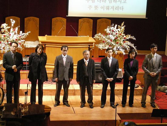 | ▲목양 사역팀이 중창했다. (오른쪽에서 네 번쩨)김은철 담임 목사. | |