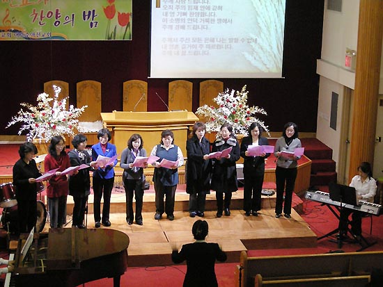 이 날은 유치부, 중등부, 청년부, 목양 사역팀, 마리아 선교회(만 45세-51세 여교우), 한나 선교회(59세-66세까지 여교우), 바나바(만 38세-46세 남교우). 여호수아 선교회(47세-55세 남교우)에서 찬양을 선보였다. 또한 합창 및 독창은 물론 피아노. 프렌치 혼. 바이올린 연주를 비롯해 시 낭독도 진행됐다.