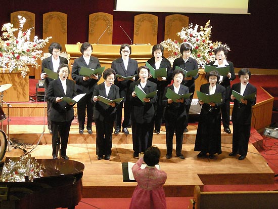 | ▲마리아선교회에서 '오직 주의 사랑에 매여'를 합창했다. | |