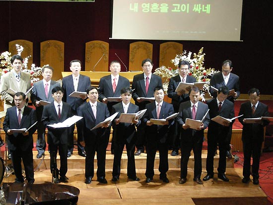 | ▲바나바, 여호수아선교회에서 '내 영혼의 그윽히 깊은 곳에서','부름받아 나선 이 몸'을 합창했다. | |