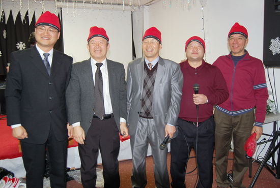 | ▲교역자들도 함께 모자를 쓰고 기뻐했다. | |