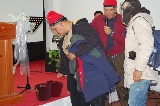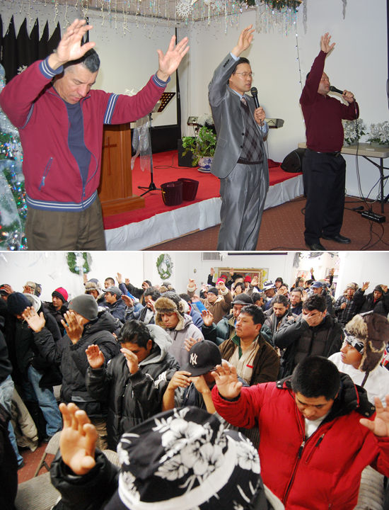 매주일 오후 3시 엘머스트 성전에는 히스패닉이 모여 예배드린다. 지금은 성전을 메울 정도로 히스패닉들이 늘어났지만 5년 전에는 서너명 뿐이었다. 엘머스트, 잭슨하이츠 부근에서 배회하는 홈리스들에게 식사를 제공하다가 그들을 교회로 데려와 예배드리고 교제하는 것이 시작이었다. 지금도 꾸준히 전도하고 식사를 나눠주고 있다. 크리스마스를 앞둔 19일에는 좀 더 특별한 자리를 마련했다. 교육부 어린이들과 청소년들이 찬양과 바디워십을 선물로 선사했다. 여기에 추위를 이겨내라고 3백여개의 모자도 함께 나눠주었다.
