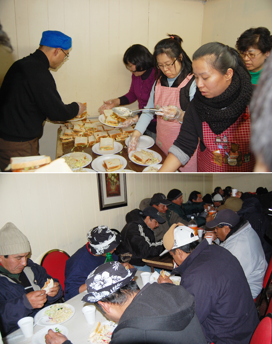 | ▲예배 후에는 만국교회 성도들이 히스패닉 성도들을 대접한다. | |